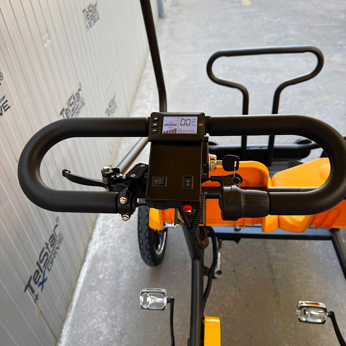 Педали: Позволяват комбинирано задвижване чрез педалите и електрическия мотор, като дава възможност за икономия на енергия при по-кратки разстояния или при желание за физическа активност.