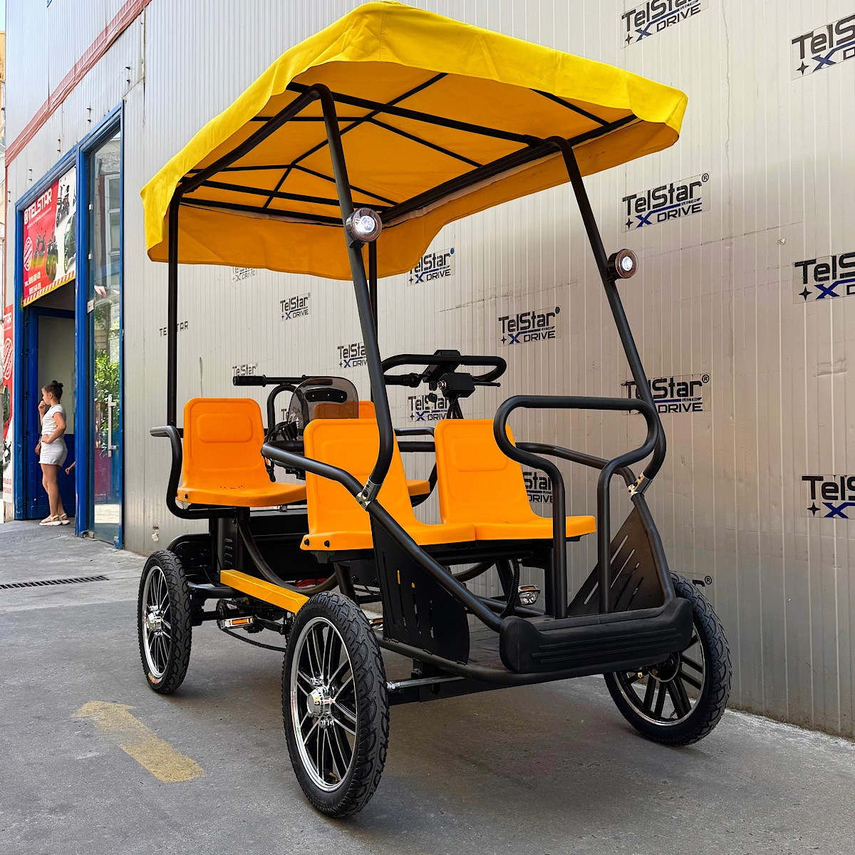 Електрическата рикша с педали Tourist-4 23Ah е идеален избор за комфортно и екологично транспортно средство, съчетаващо електрическо задвижване с възможност за педалиране. Тя е проектирана за туристически маршрути, кратки пътувания и бизнес нужди, като осигурява удобство и ефективност в градска среда.