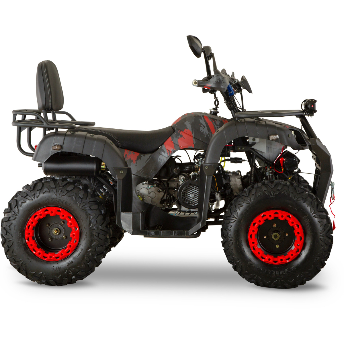 | Допълнителна информация | - Професионална лебедка 1 тон с дистанционно управление - Реален теглич с усилена рама издържащ до 3000lbs ≈ 1,6 тона товар (на ст-ст 300лв.)! - Цифров LCD скоростомер - Висок клас окачване - USB конектор - Сигнална хорна - Протектори за ръцете - Ловджийски LED BAR - Мигачи + стопове - Облегалка с нов дизайн - Капацитет на масления резервоар: 1.5 L - Консумация гориво: ≤ 365g/kW/h - Наклон на изкачване: ≥ 25 ° - Кармаксимална скорост: 80 км/ч - Подарък - зарядно за акомулатор + COMMANDER огледала! |